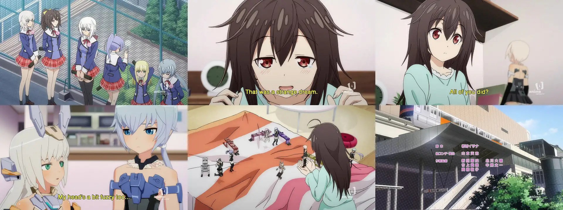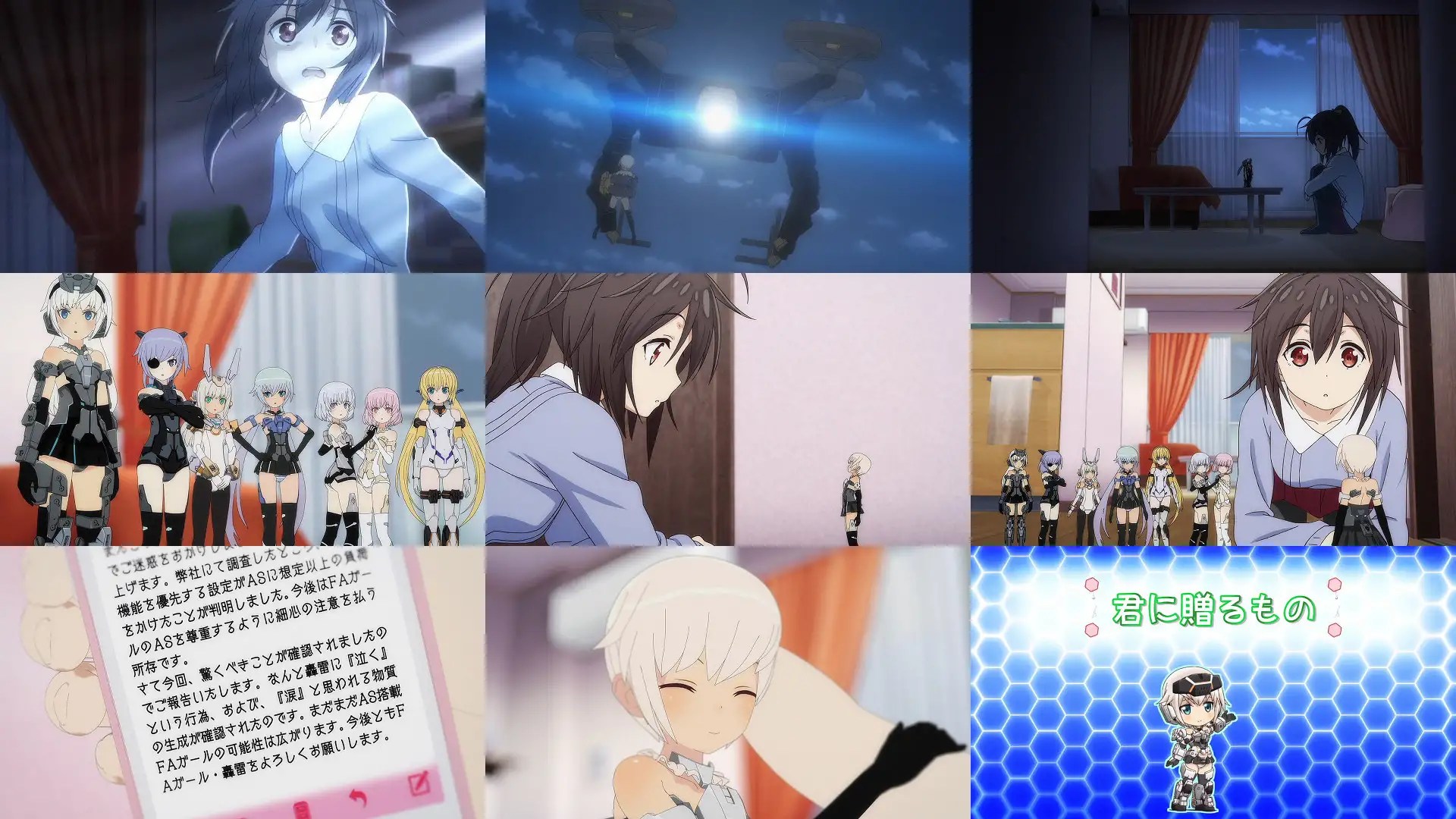 1+0+0+2+1 1+0+0+0+0=+5「 フレームアームズ・ガール 009」A-Part情緒高昂,CUT數多,映像熱量較高的一話;B-Part常見的夢境空間回,呈現給觀眾另一種,平行時空可能性幻想。趣味性的變化。此話各橋段節奏及演出佳,超出本作各集平均水準。應是單人擔當回的原因。